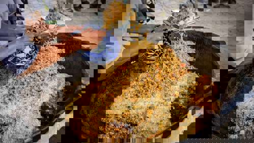 Exploring can be hungry work, and as you make your way across Uzbekistan, you’ll be spoilt for choice of traditional foods to keep you topped up. Refuel after a day’s exploration with a hearty bowl of plov, a rice dish similar to pilaf, and try a traditional samsa, a lamb and pumpkin-filled pastry, as you browse the bazaars. After dinner, halva, a sweet, fudge-like treat made of flavoured syrups, tahini, and dried fruits or nuts, is the perfect thing to go alongside an evening cup of tea.