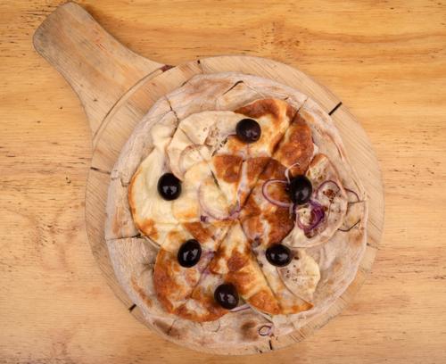 While you might expect to find passata, mozzarella cheese and basil on an authentic Neapolitan-style pizza, Fugazetta features none of these ingredients. Instead, it’s made up of two layers of dough, stuffed with plenty of cuartirola cheese, and then topped with onions and oregano.