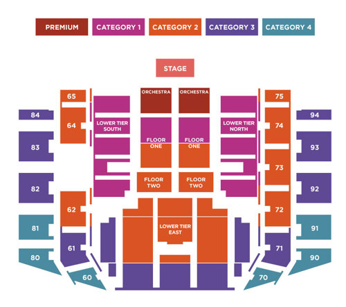 The advertised price includes a 69€ face-value, seated ticket. Upgrades to 89€, 110€, 129€ and Premium 145€ face-value tickets are available for a supplement (upgrade prices will be displayed during the booking process), which include all booking fees.
