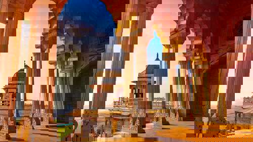 The city forms part of the Golden Triangle, the most popular tourist route in India. This is, of course, on account of its world-famous white marble mausoleum, but there are other sights and attractions to experience. Once the capital of the Mughal empire, the city still retains reminders of these powerful rulers, most notably at Agra Fort, an imposing red stone 16th-century fortress that served as both a military base and royal residence. Aside from the historical attractions, the city's lively marketplaces and bazaars provide a colourful if sometimes chaotic shopping experience to hunt for souvenirs.